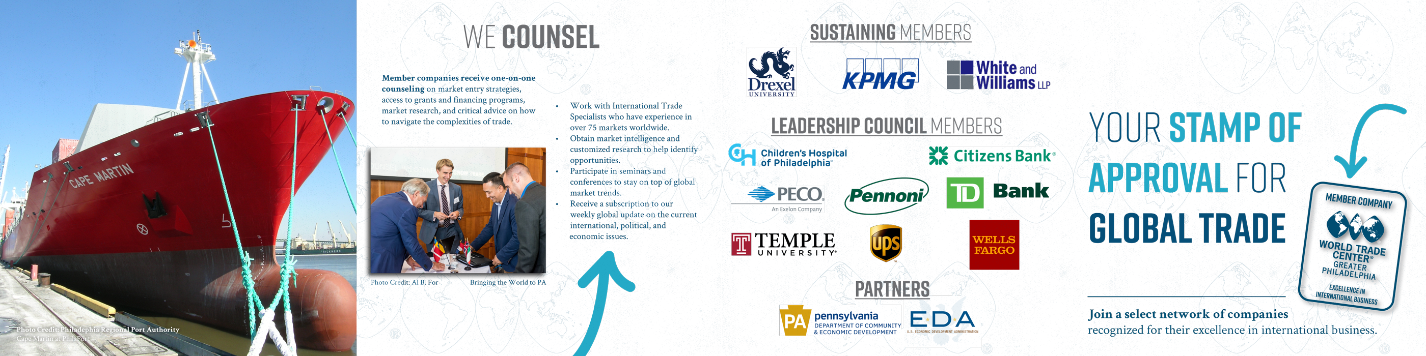 Print and digital pieces I designed from a collection of materials for the World Trade Center of Philadelphia, which was share with over 322 World Trade Centers across the globe. Read the press release here.