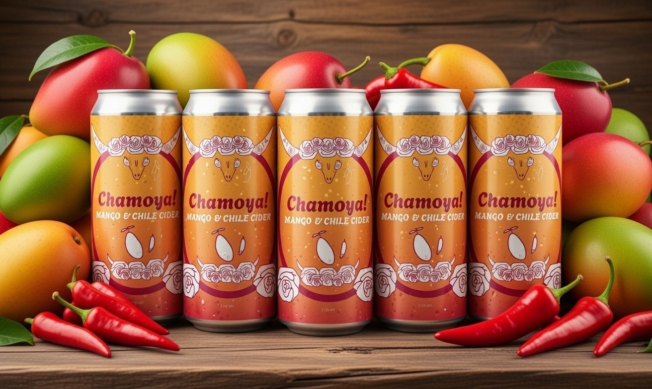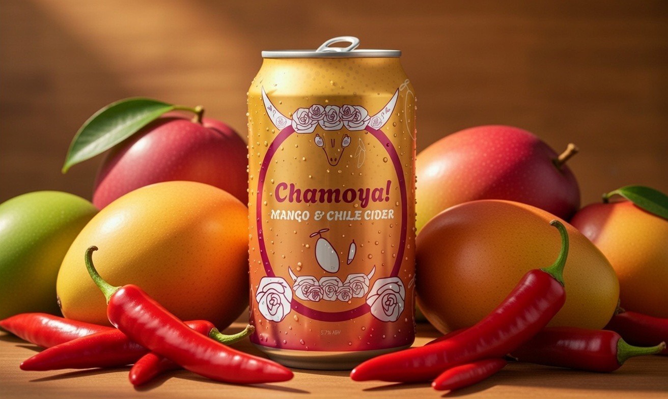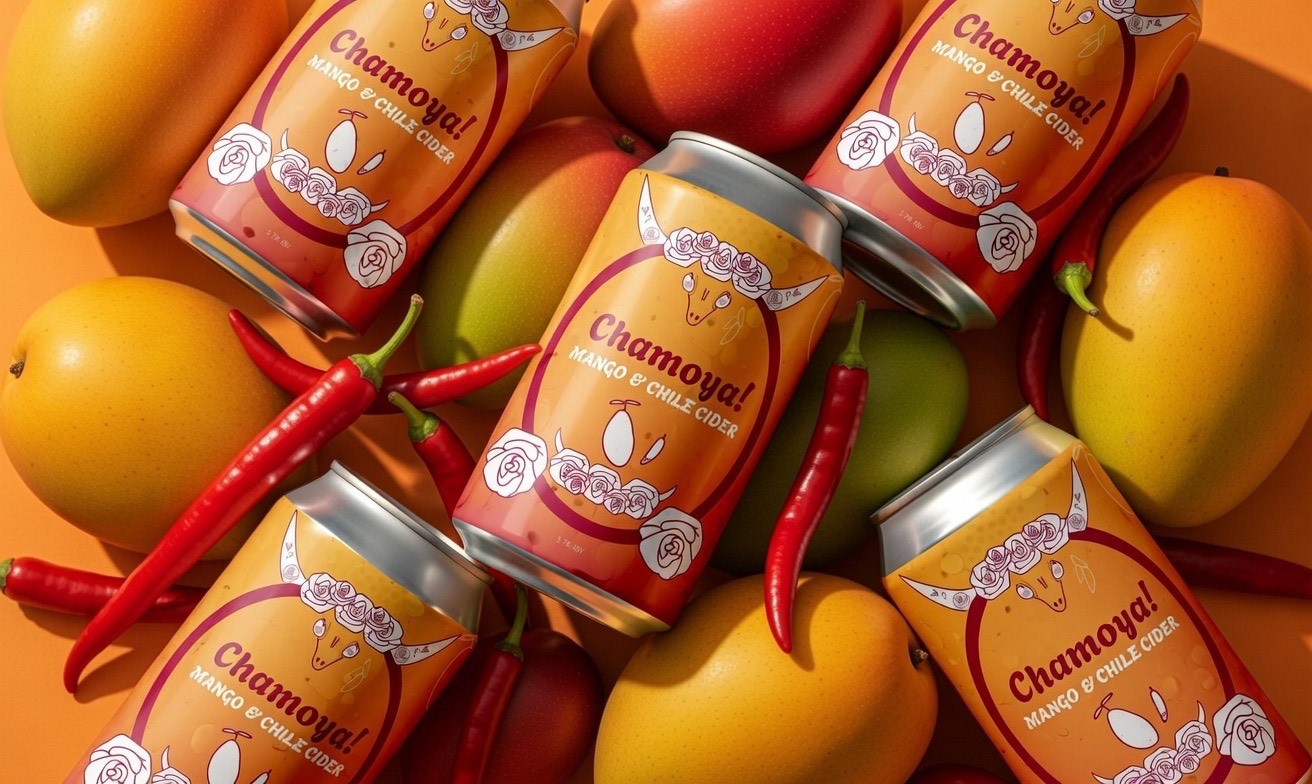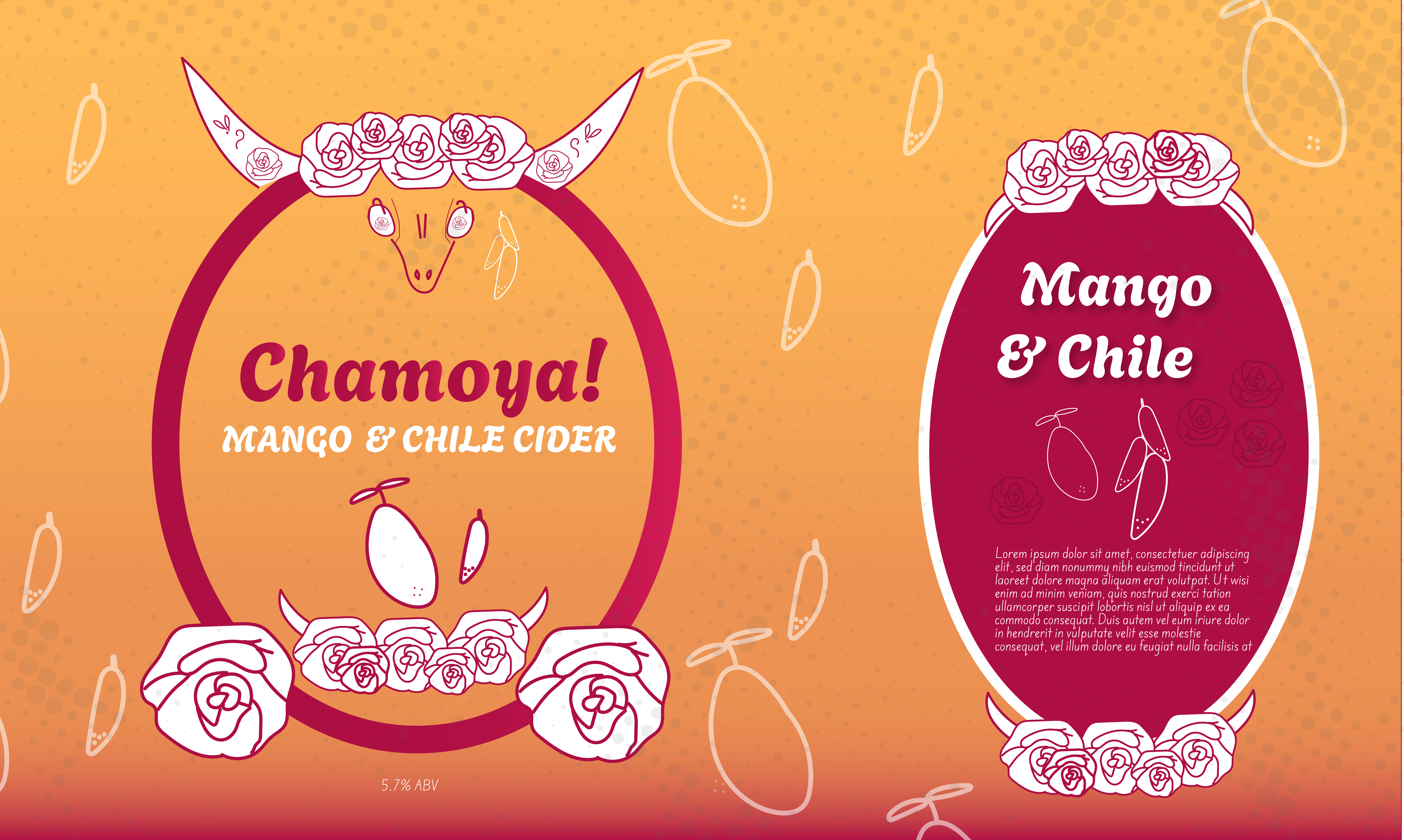 The Chamoya! identity is based off of my love for the sweet heat of a chamoyada, also known as a mangonada, in Mexican culture. Chamoya! is a craft cider sourced from Mexico with organic ingredients of mango and chile. The brand has illustrative elements with a skull at its helm.